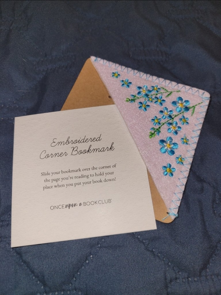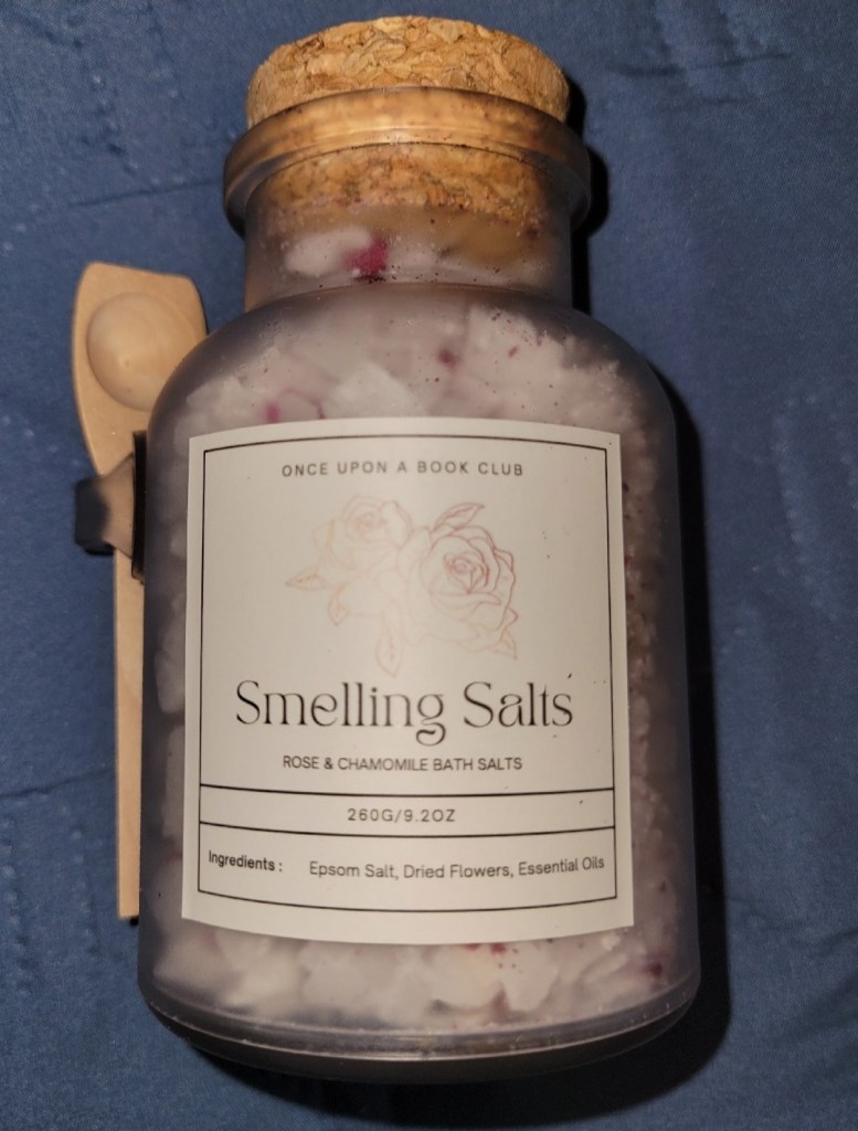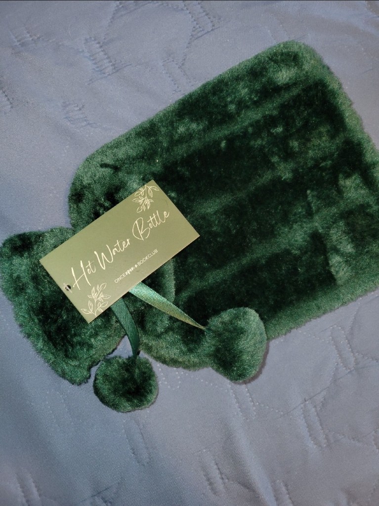 For those who may be curious about the gifts that came with this subscription box, it included an embroidered corner bookmark, some bath salts that smell like roses and chamomile, a fuzzy hot water bottle (I didn’t even know anyone uses these anymore! Why wouldn’t you just use an electric heating pad? haha), and a crystal sugar bowl. I jokingly said to my mom, aka live-in dog nanny, that they must not know how my mom likes her coffee and tea, because the sugar bowl is so small. It would be about 1 sugar serving for her! lol Check out the pictures below at your own risk. I already warned you I’m not a professional photographer! lol
